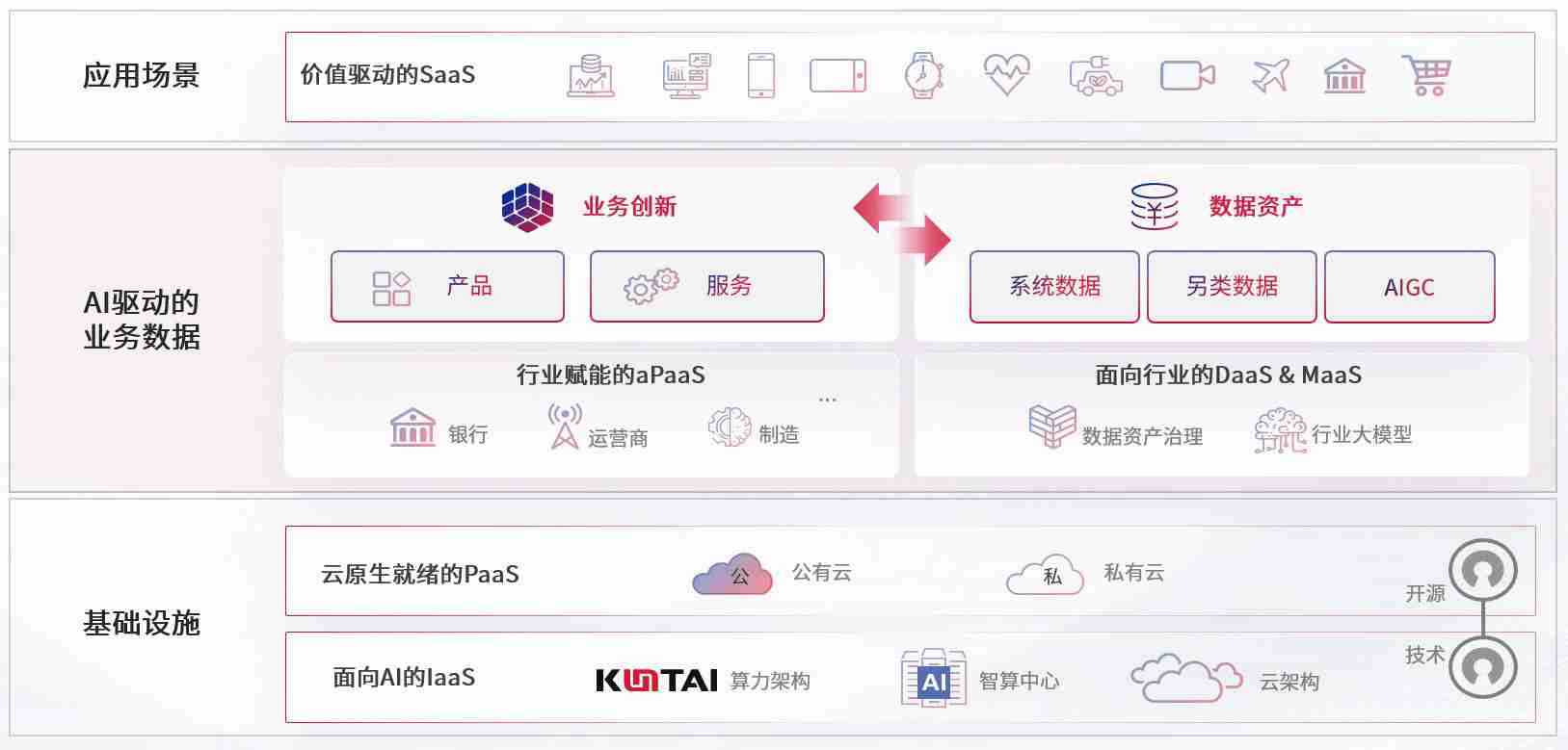 数字时代,,围绕企业数字化转型的关键要素,,,,nopay钱包数码开创性的提出数云融合战略和技术体系框架,,着力在云原生、、、、数字原生、、、AI原生和信创产业上架构产品和服务能力,,为处在不同数字化转型阶段的快消零售、、、、汽车、、金融、、医疗、、政企、、、、教育、、、、运营商等行业客户提供泛在的敏捷IT能力和融合的数据驱动能力,,构建跨界融合创新的数字业务场景和新业务模式,,,助力企业级客户建立面向未来的核心能力和竞争优势,,,全面推动社会的数字化、、、智能化转型升级。。。。